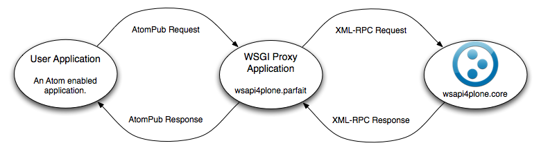 Google Summer of Code to the rescue! Two of the seven SOC 2009 students are working on a WSGI middleware application that does exactly that. It is called wsapi4plone.parfait, and it will use wsapi4plone.core for its communication with the Plone site. The process looks like this: