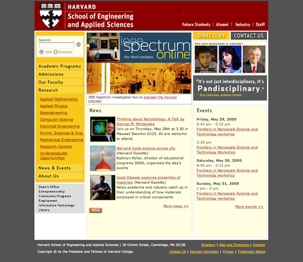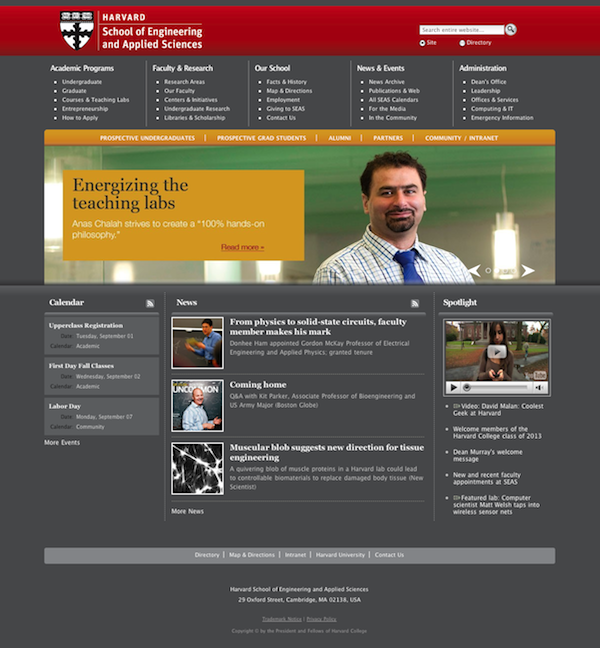 Over the next few weeks, we’ll be presenting bits on the recently launched Harvard School of Engineering and Applied Sciences public web site, intranet and faculty/lab subsite infrastructure based on Plone.