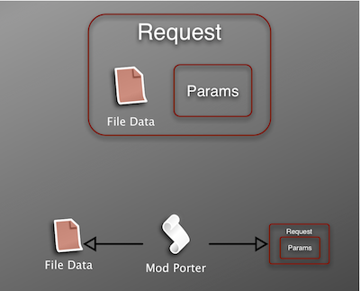 In a nutshell, ModPorter does the following to an incoming request.