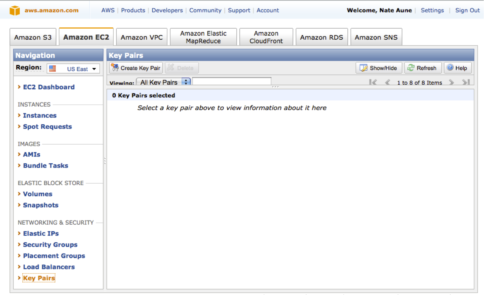 You’ll need to have created a keypair in the AWS Management Console or using ElasticFox, that has the name “demo-server-keypair”. You’ll want to save the keypair file someplace safe on your computer, as you will need this in order to SSH into the server.